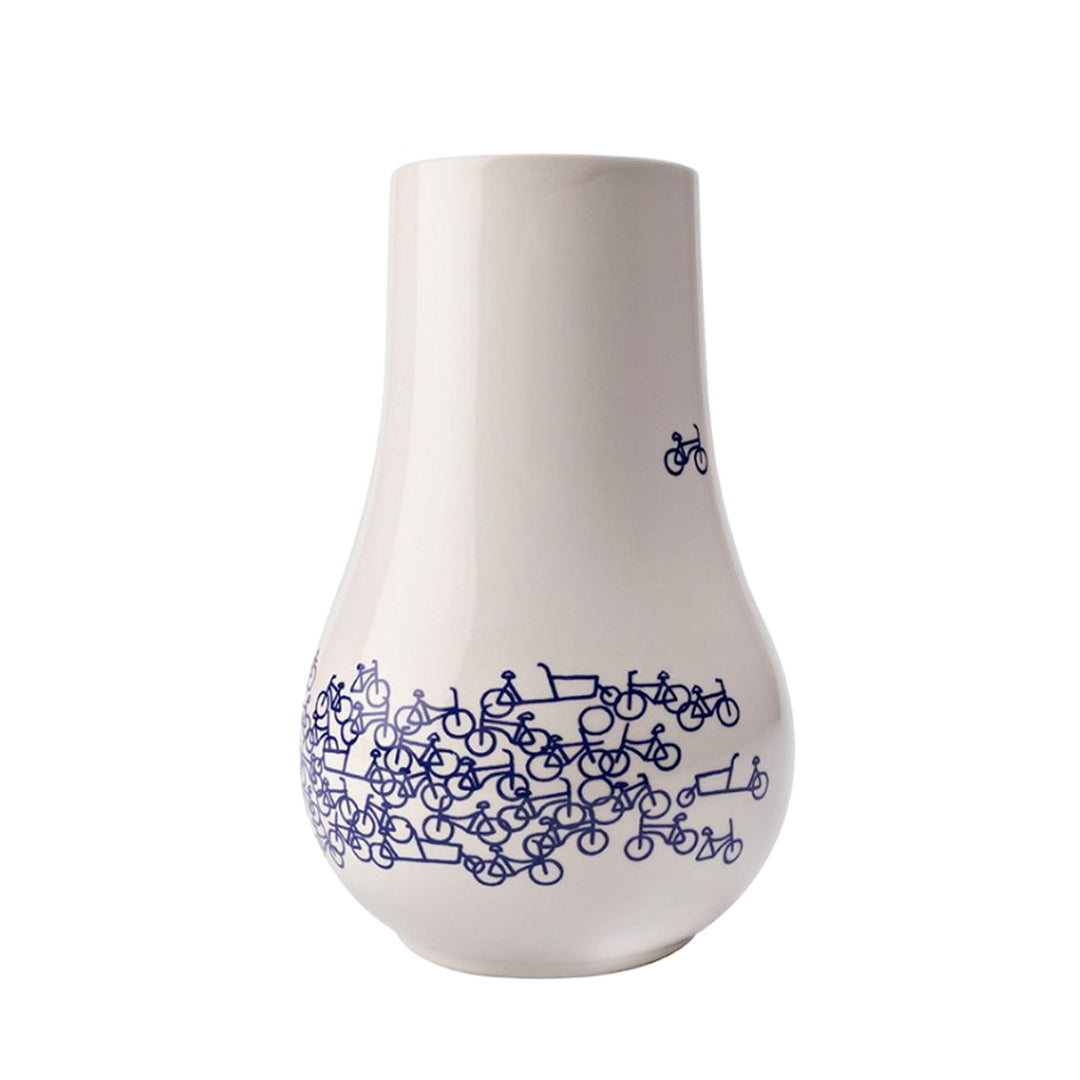 Holländische Vase mit Fahrradmuster unten bauchig - 21 cm hoch