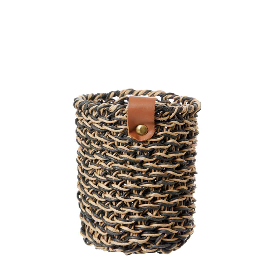 Mittelgroßer, schwarz-beiger Korb aus gewebtem Papier - 11 x 15 cm