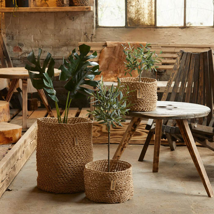 Riesiger, geflochtener Korb aus gewebtem Papier in Naturfarbe