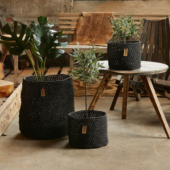 Riesiger, geflochtener Korb aus gewebtem Papier in Schwarz