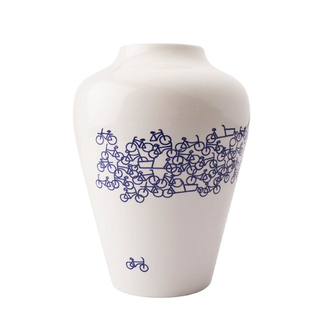 Holländische Vase mit Fahrradmuster oben bauchig - ø18 cm