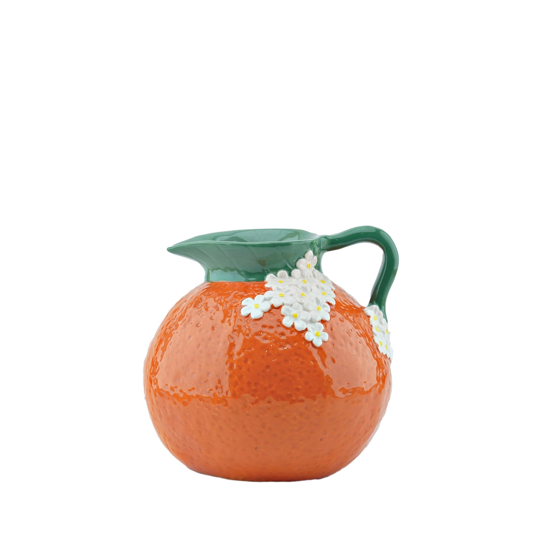 Orangener Krug mit weißem Blumenmuster