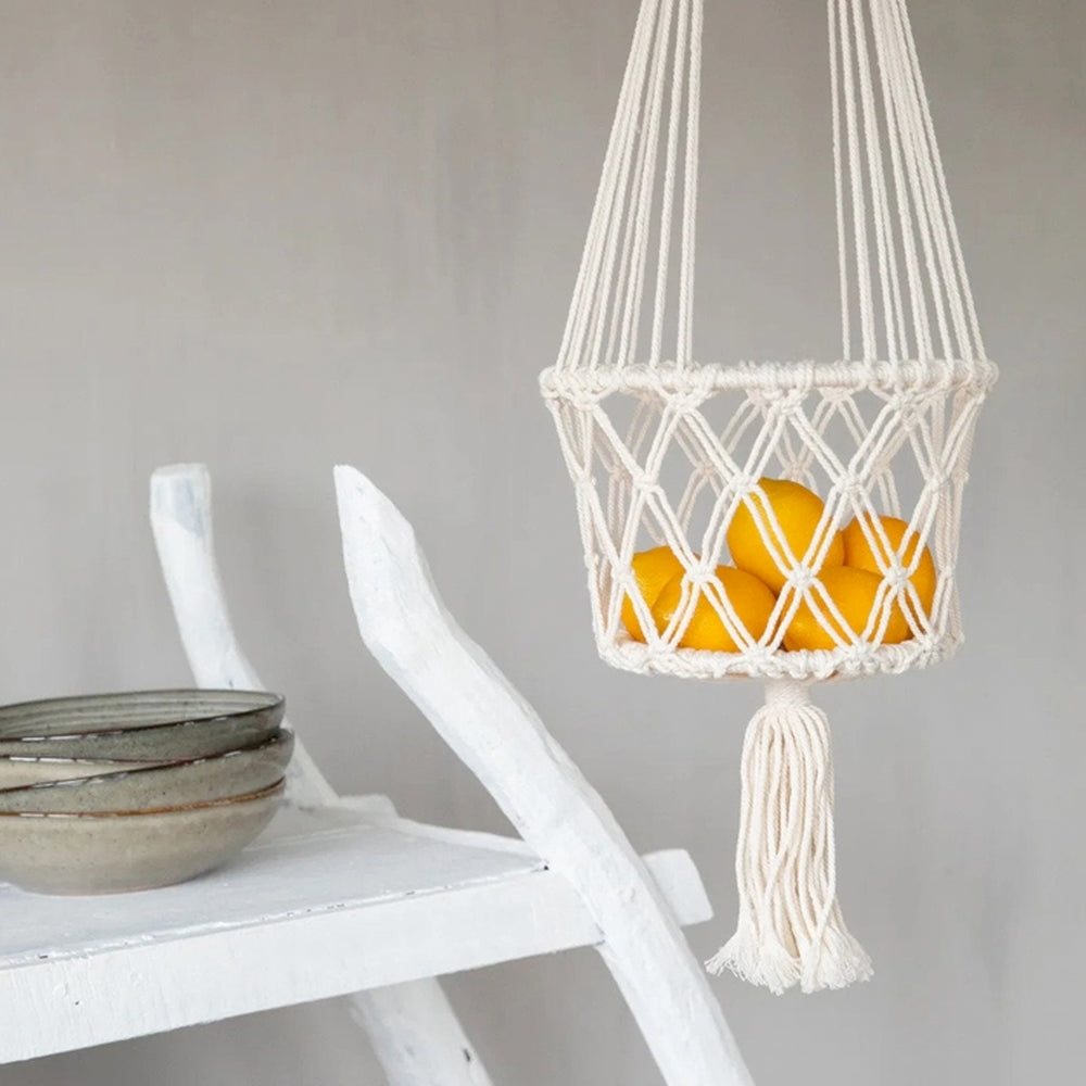 Hängender Makramee-Pflanzenkorb - Weiß