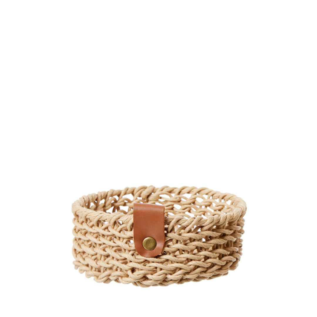 Flacher, beiger Korb aus gewebtem Papier - 14 x 7 cm