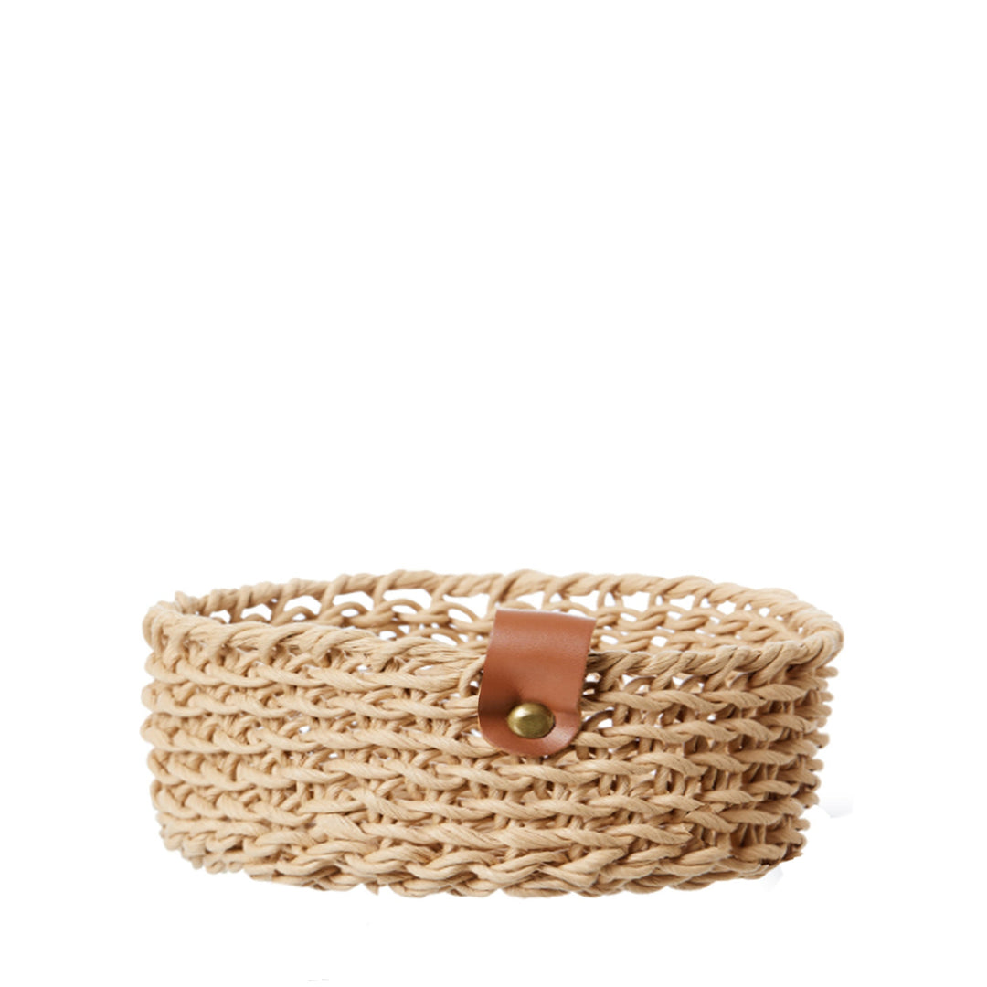 Flacher, beiger Korb aus gewebtem Papier - 17 x 8 cm