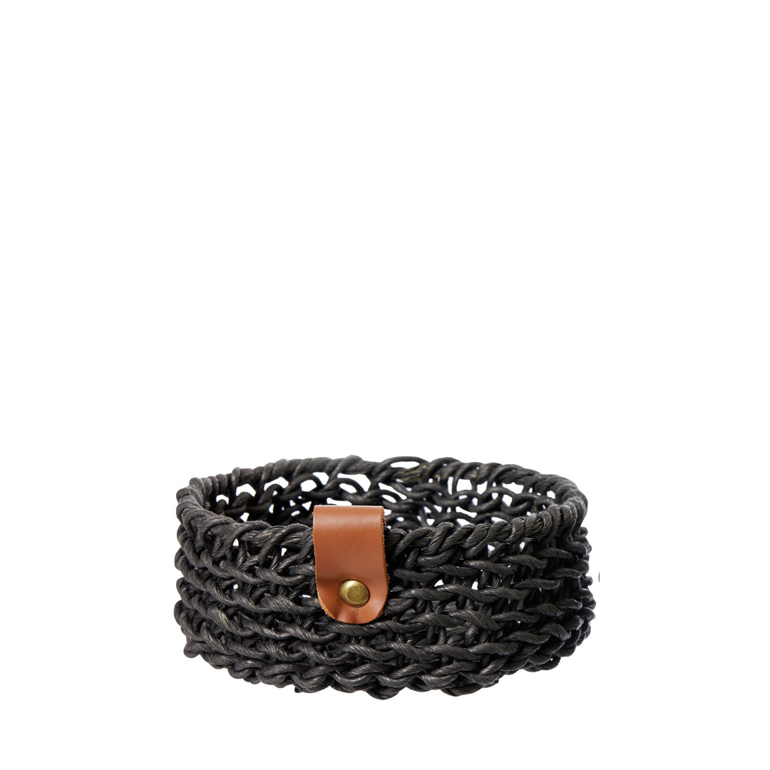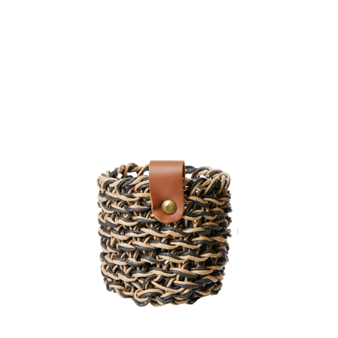 Kleiner, schwarz-beiger Korb aus gewebtem Papier - 8 x 10 cm