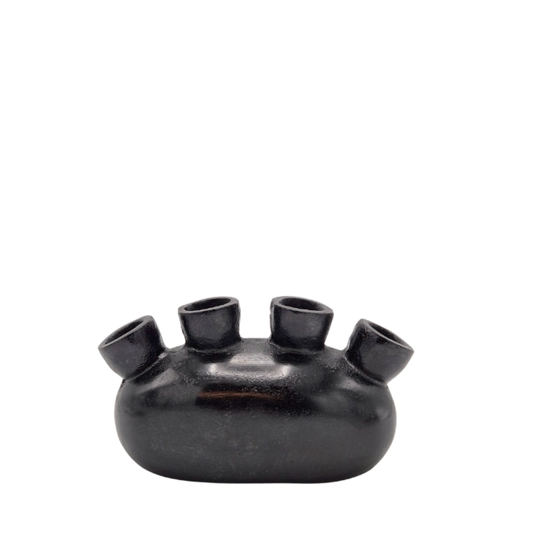 Blumenvase aus Aluminium mit 4 Löchern - Schwarze Vintage-Optik