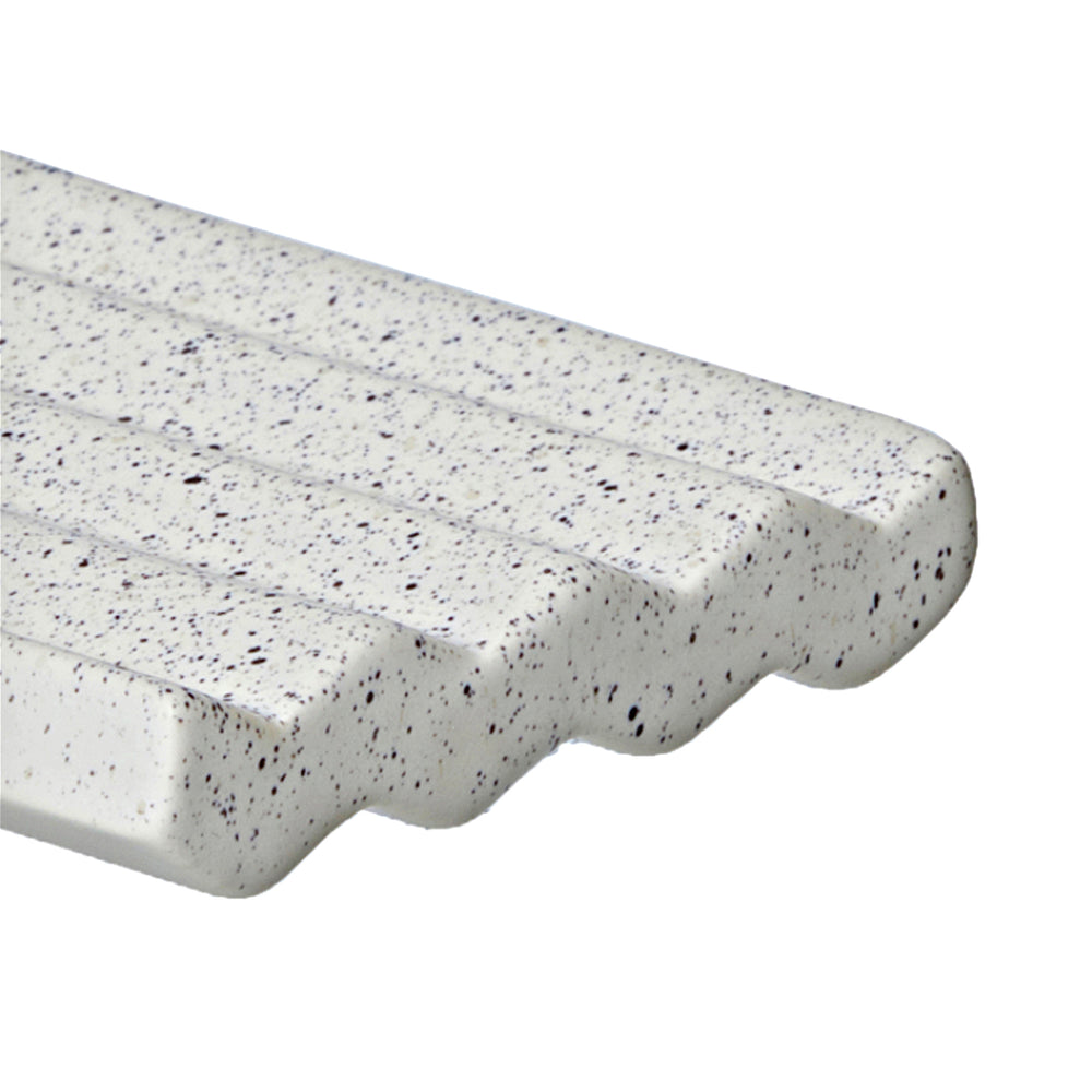 Gewellte, weisse Seifenablage mit kleinen Punkten