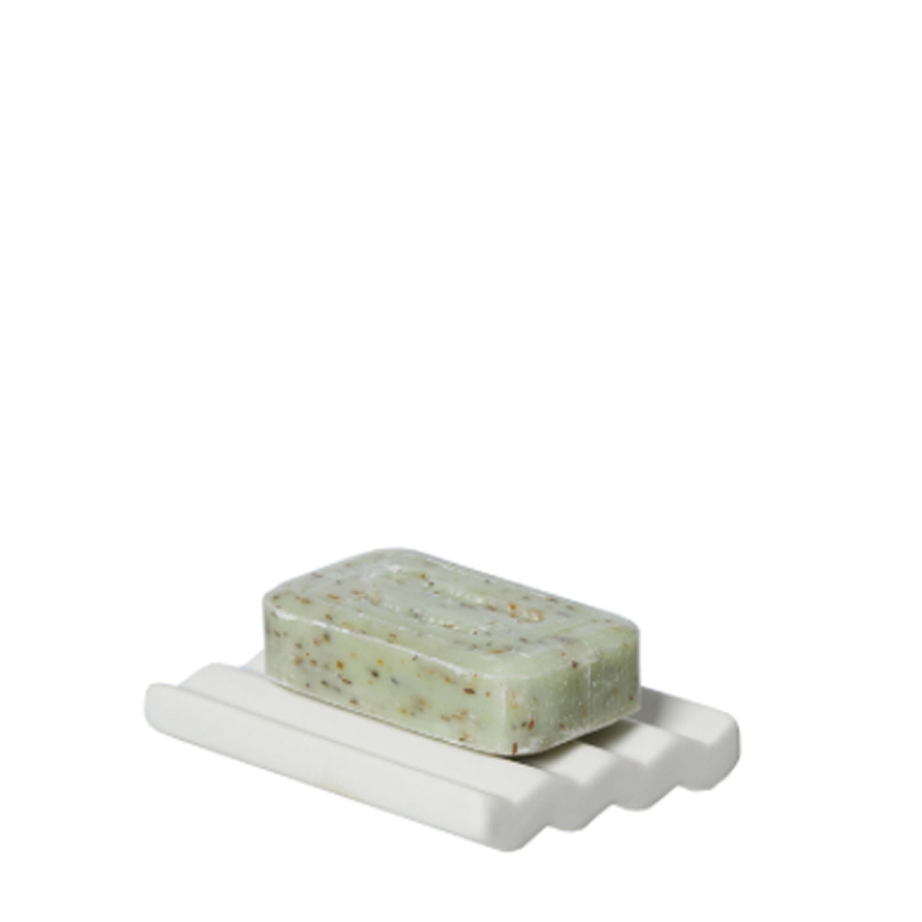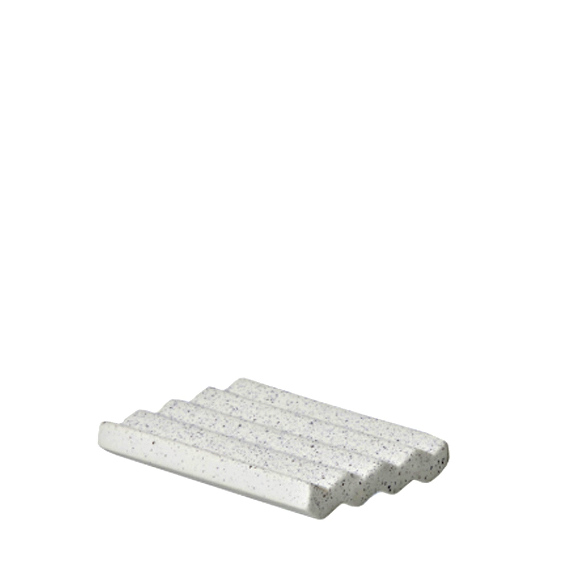 Gewellte, weisse Seifenablage mit kleinen Punkten