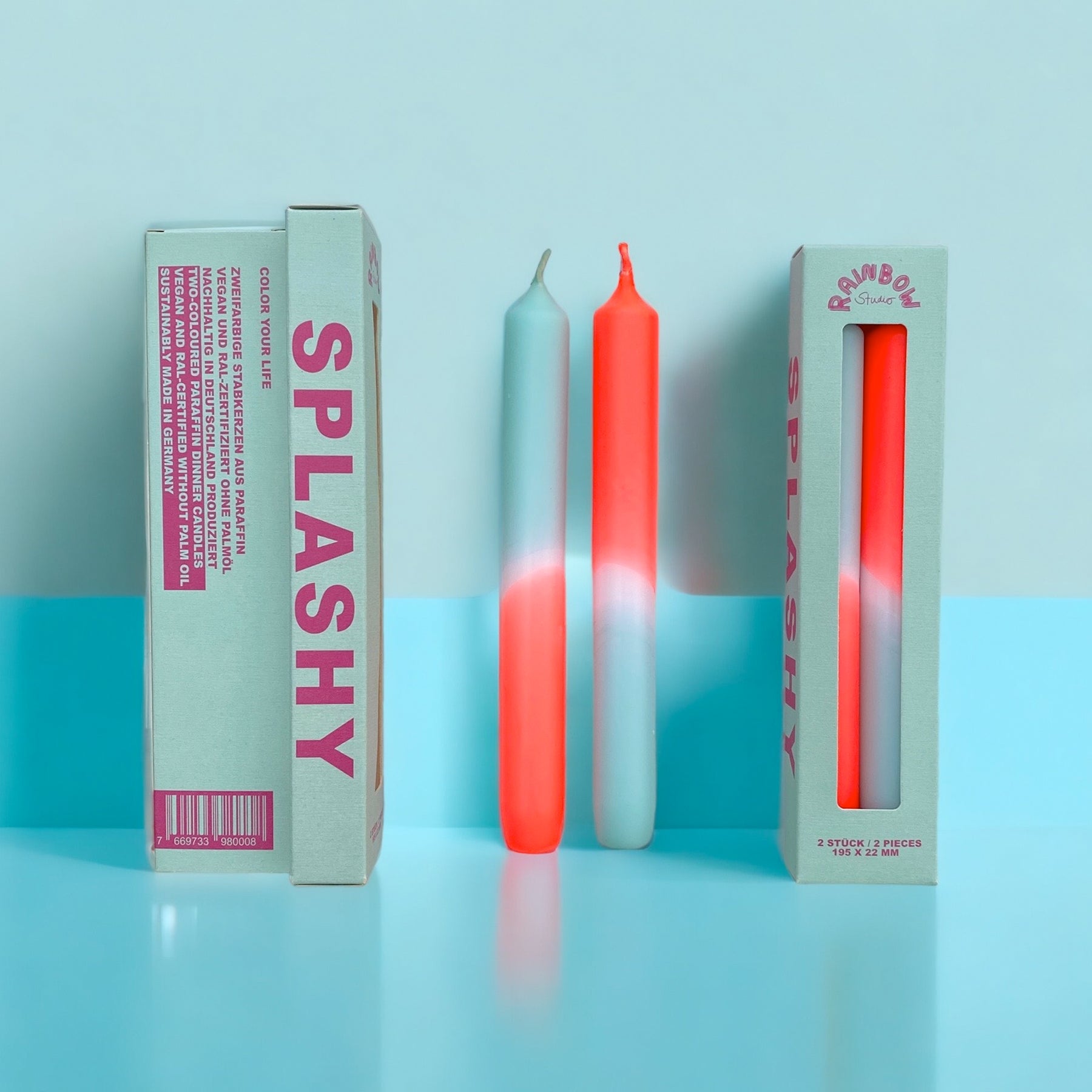 Rainbow Studio "Splashy" – Handgetauchte Neon-Dinnerkerzen Im 2er-Set