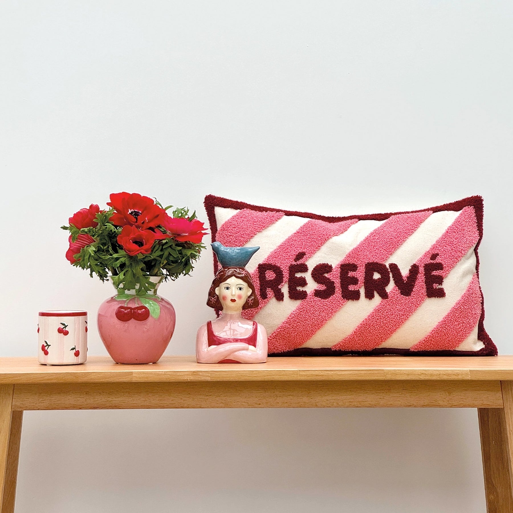 Figürlicher handbemalter Kerzenhalter „Frau mit Vogel"