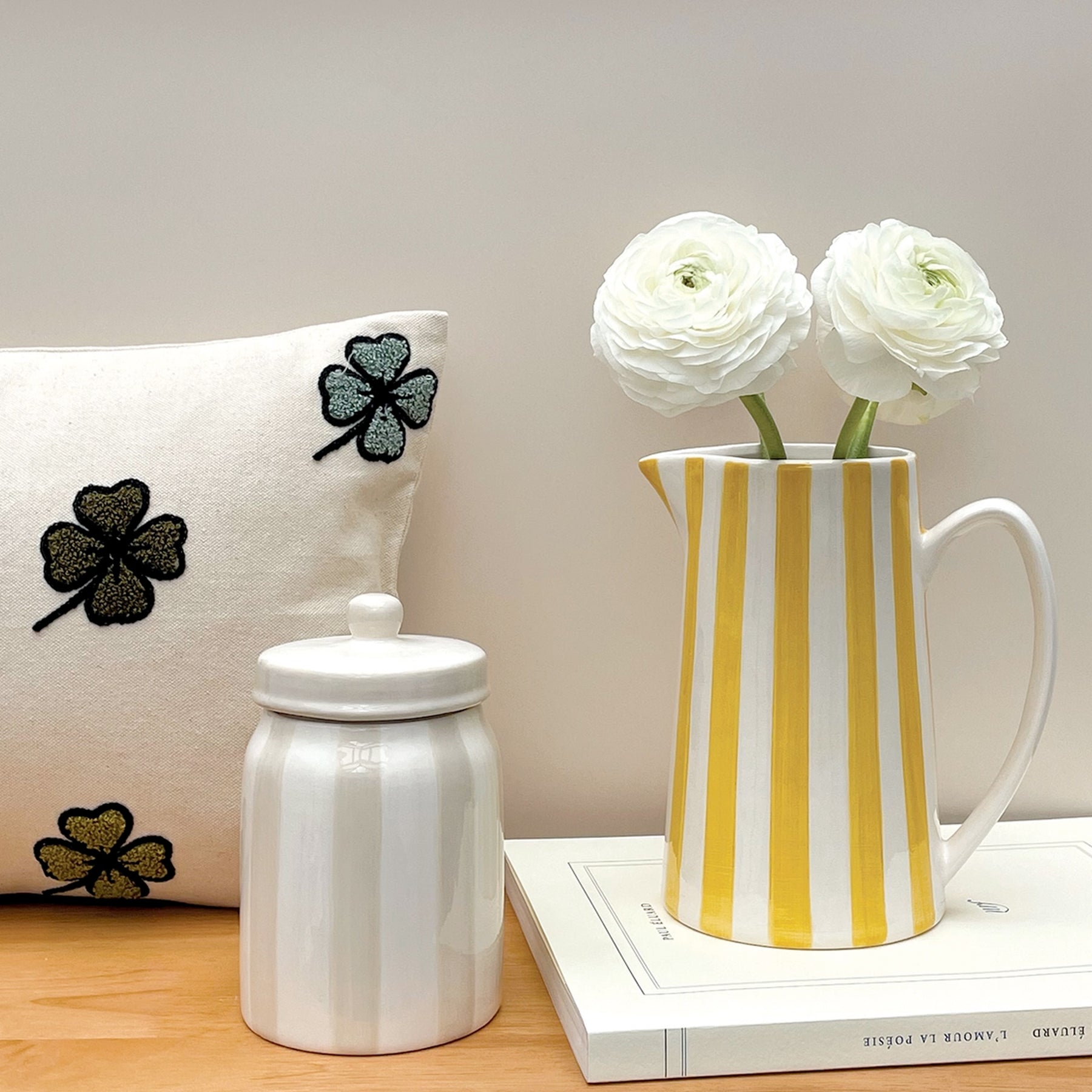 Cooler Krug mit Streifen - Gelb-Weiß