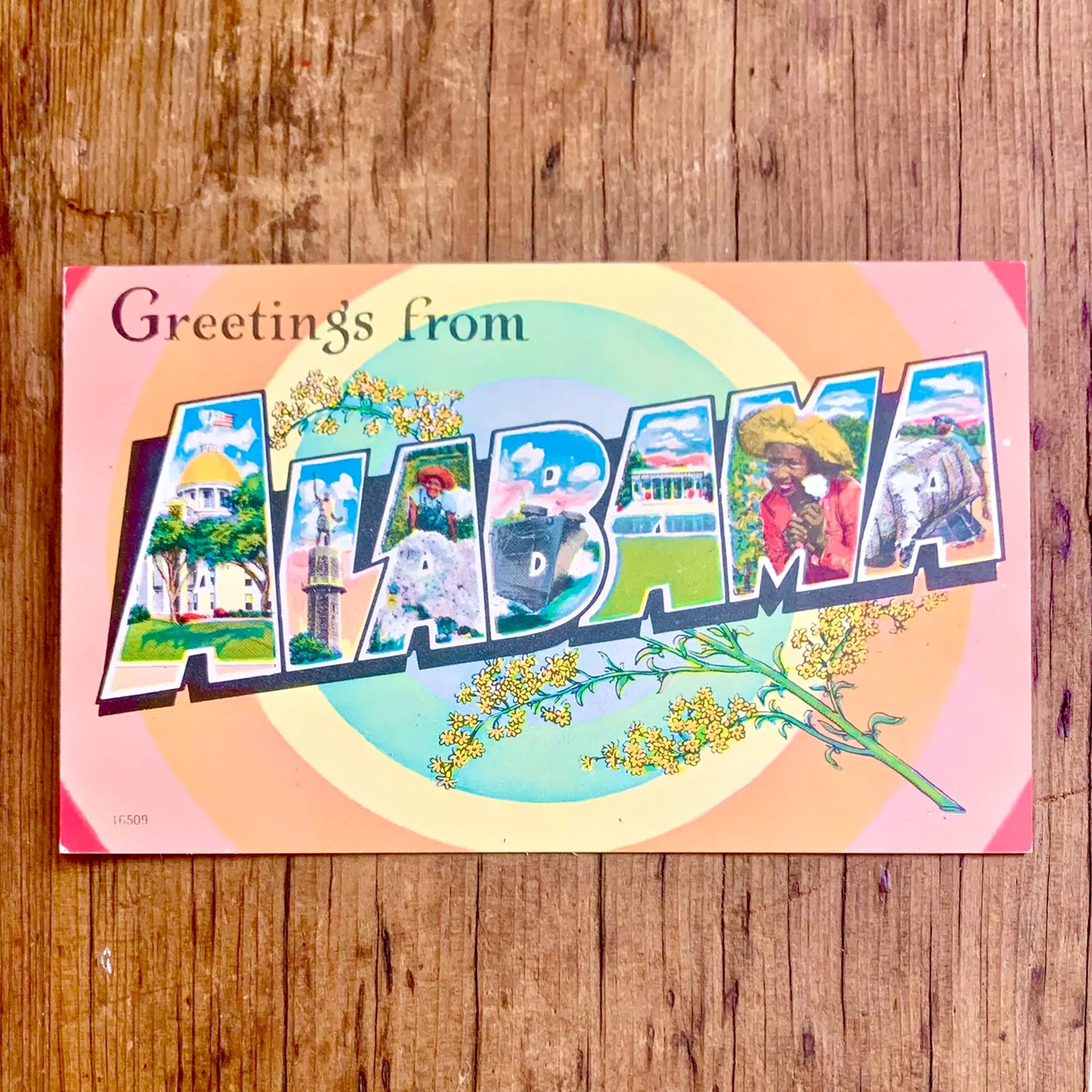Klassische Postkarte aus Alabama mit lokalen Motiven und Charme.