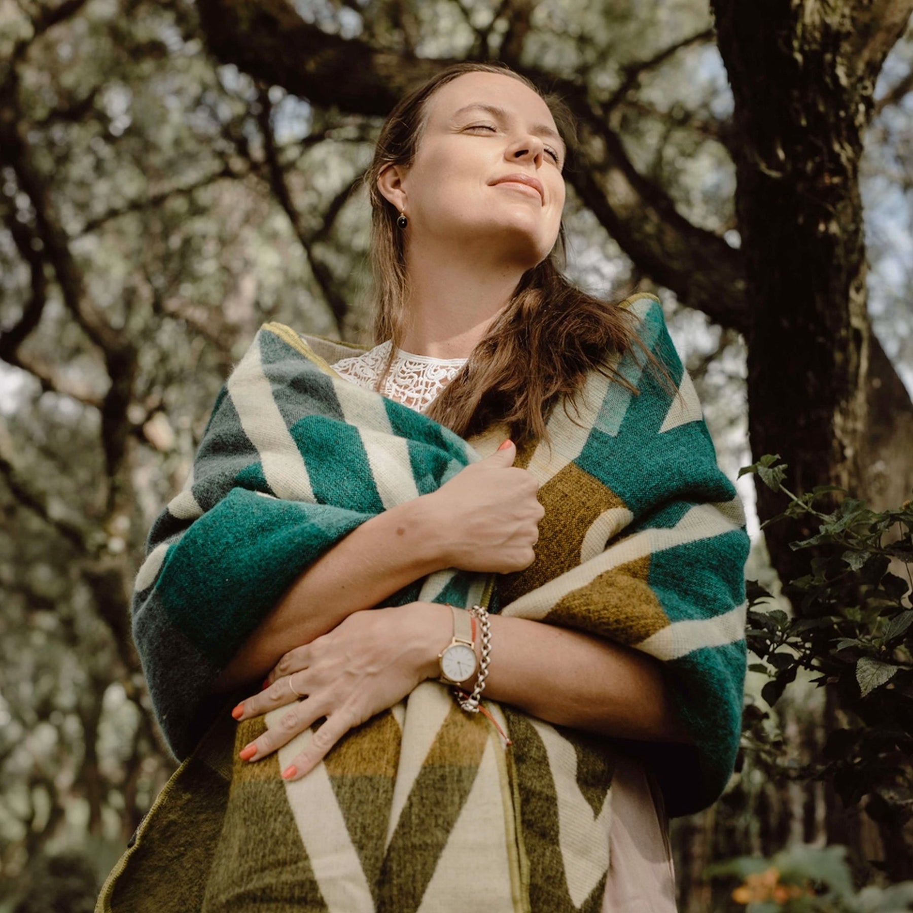 Alpakadecke Imbabura – handgewebt aus den Anden - Grün